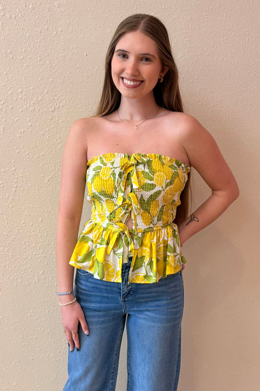Sienna Lemon Print Peplum Tube Top