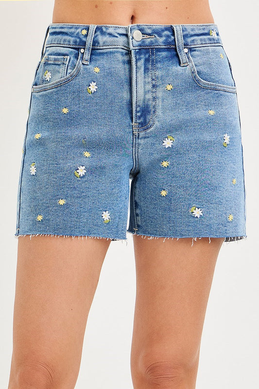 Risen Floral Embroidered Denim Shorts