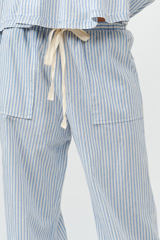 Mari Light Blue Tie Front Stripe Pants