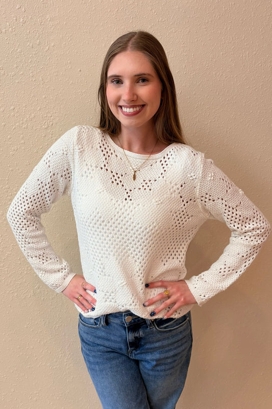 Andrea Crochet Knit Sweater Top