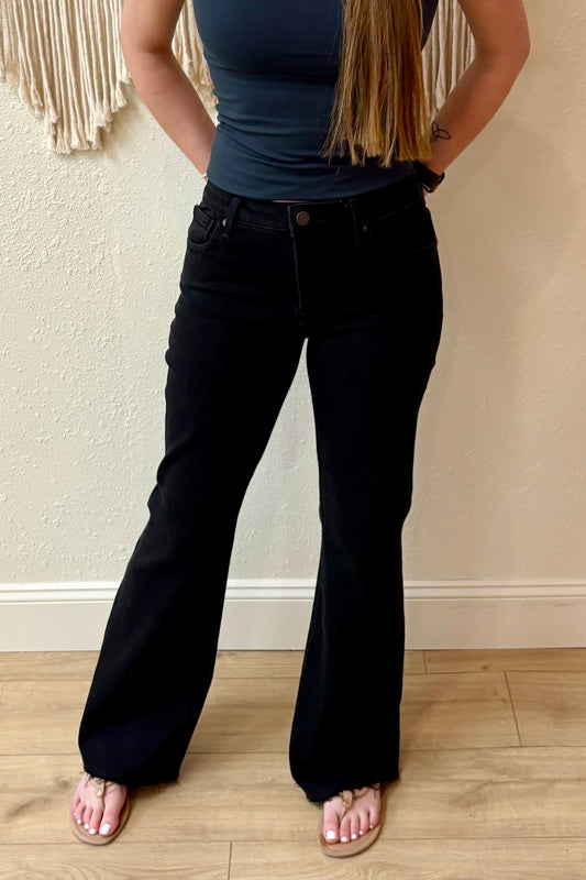 Risen High Rise Frayed Hem Straight Ankle Jean