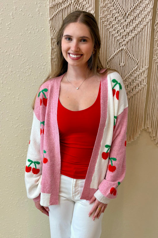Cherry Colorblock Open Cardigan