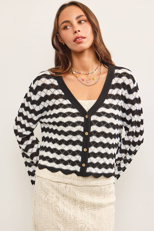 Miriam Scallop Edge Stripe Cardigan Sweater