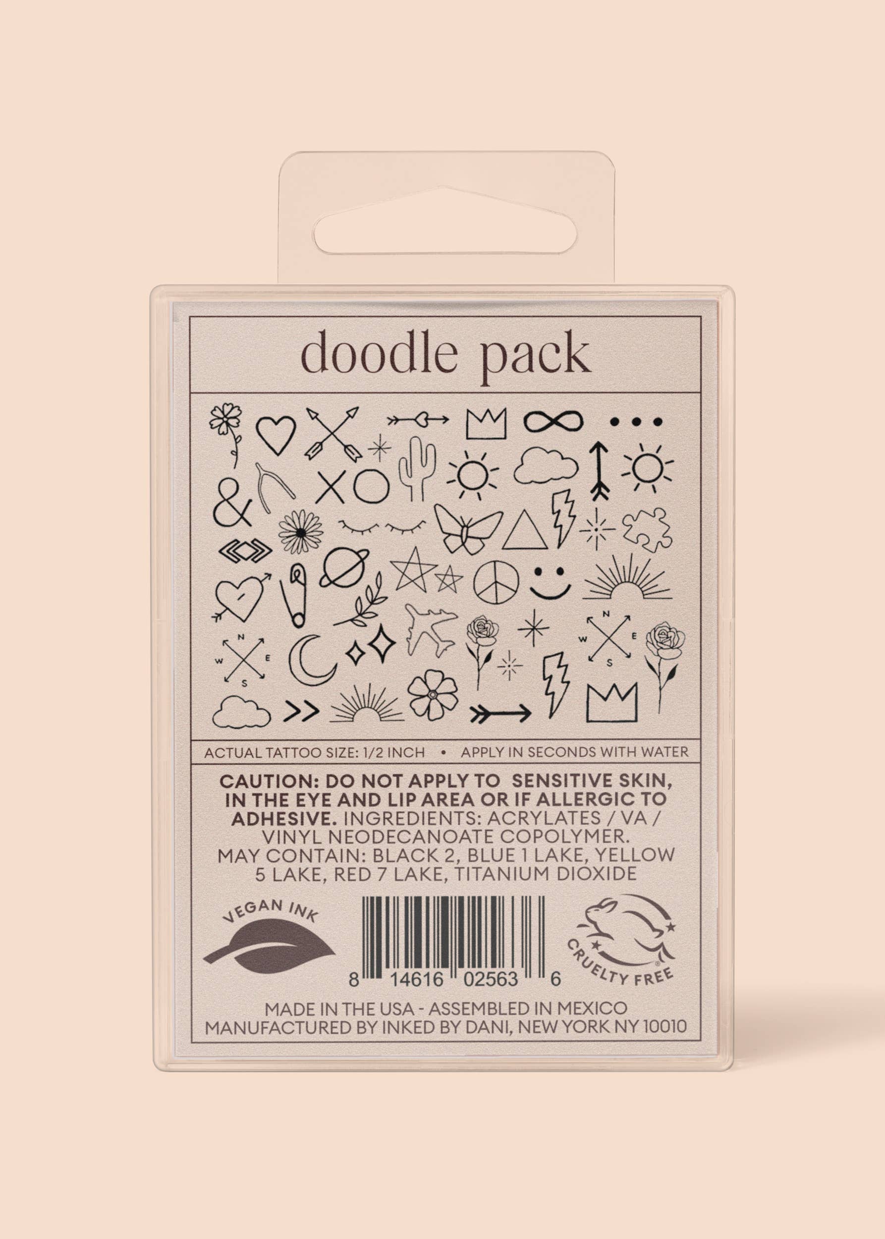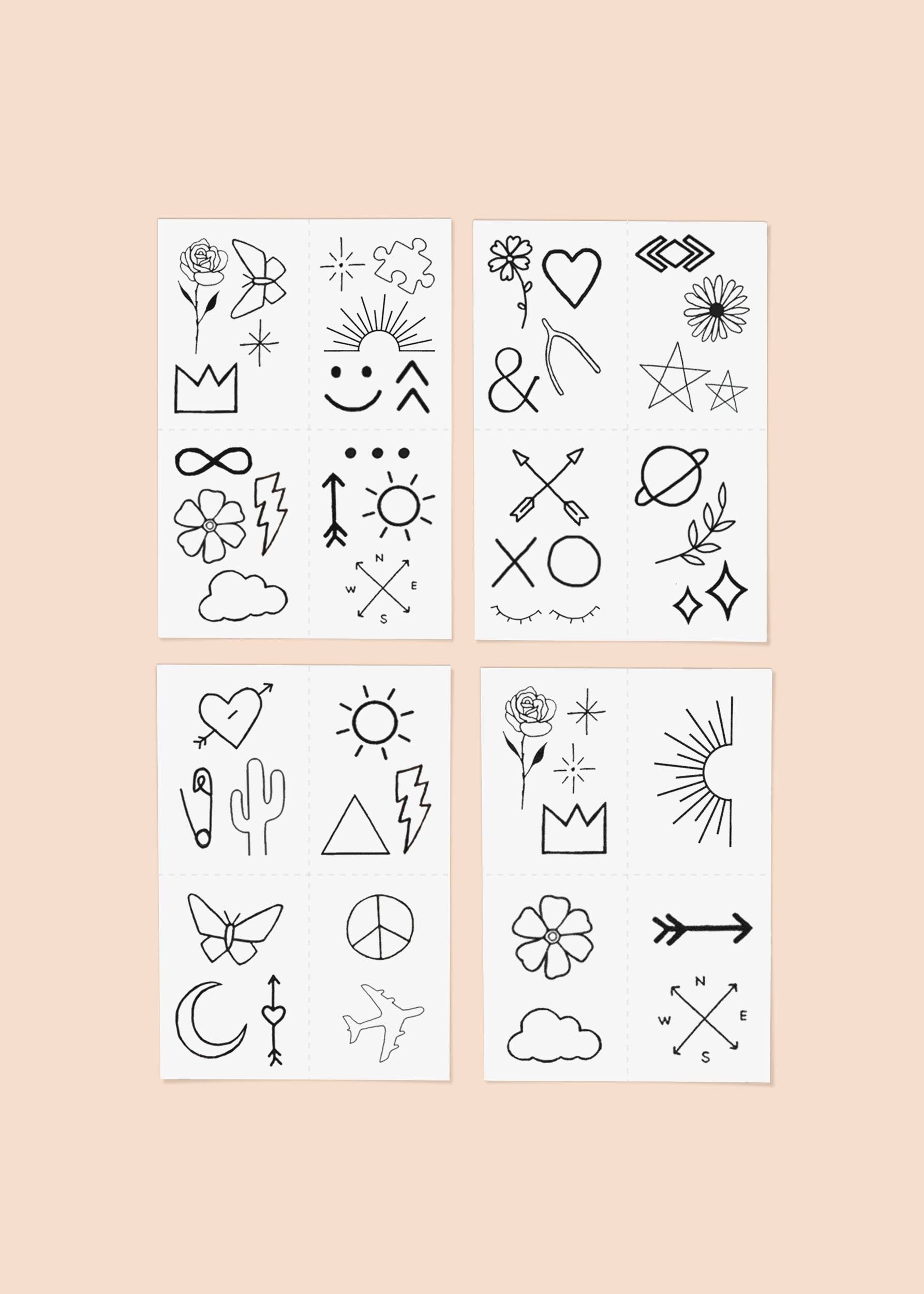 These exquisitely subtle tattoos are perfect for any tattoo enthusiast and are simple to apply using only water. Each design is hand-drawn, created with vegan, cruelty-free, and non-toxic ink that’s waterproof. Sizes vary between ½ inch and 2 inches. Proudly made in the USA, these tattoos last from several days up to two weeks.