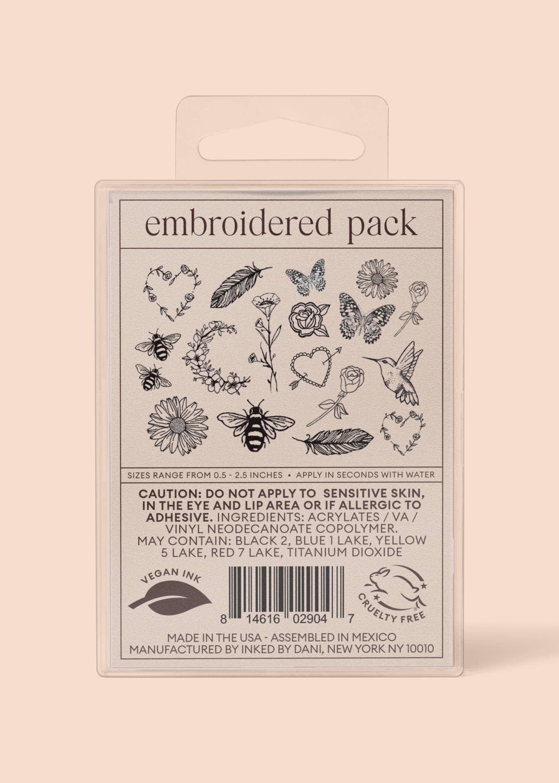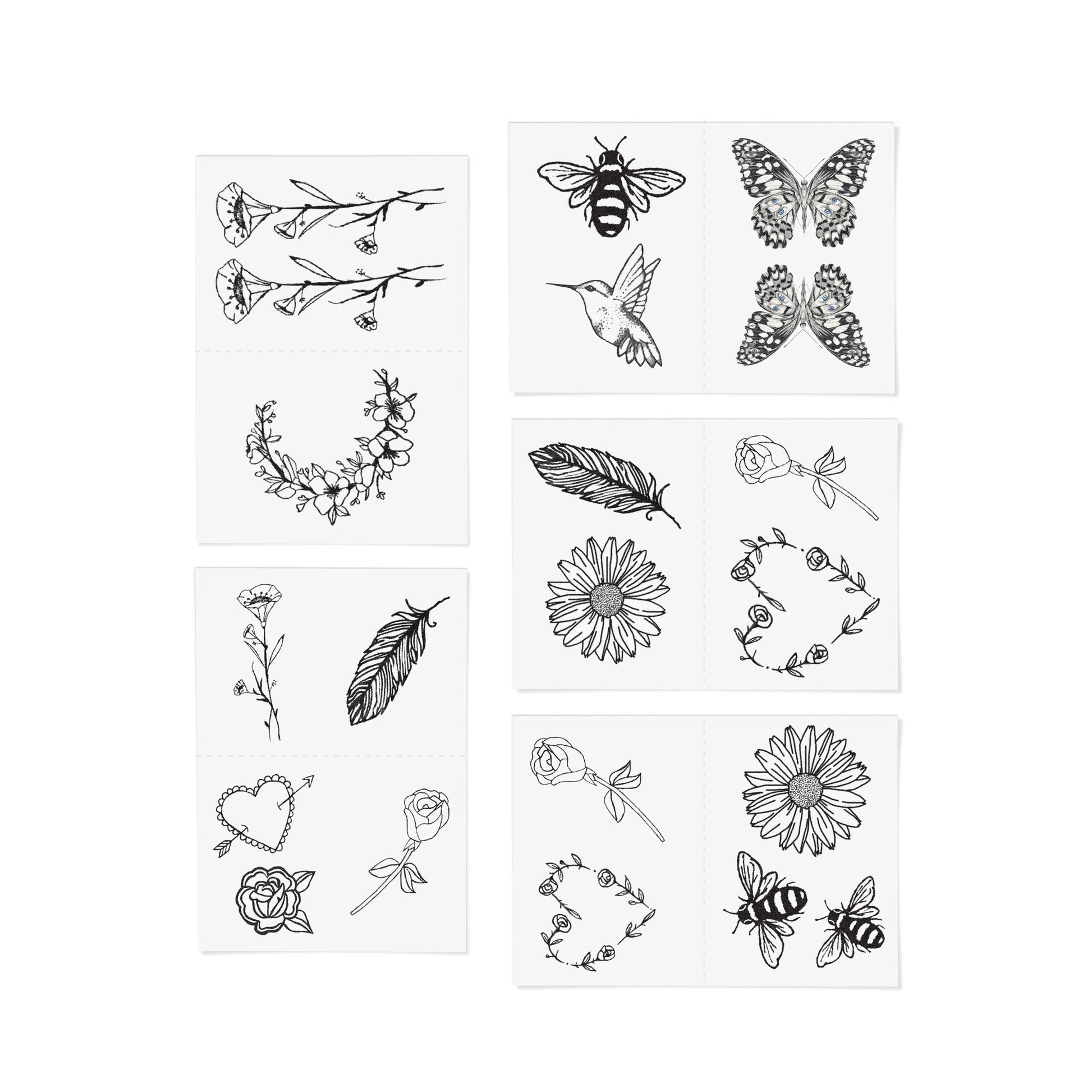 These exquisitely subtle tattoos are perfect for any tattoo enthusiast and are simple to apply using only water. Each design is hand-drawn, created with vegan, cruelty-free, and non-toxic ink that’s waterproof. Sizes vary between ½ inch and 2 inches. Proudly made in the USA, these tattoos last from several days up to two weeks.
